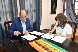 La Intendente de la Municipalidad de Villa Ojo de Agua, Dra. Mónica Bustamante junto al Ministro de la Producción de la provincia, firmaron un convenio marco a través de la cual el municipio recibirá del Superior gobierno de la provincia, una Pala Cargadora Retroexcavadora marca Buli que se sumará al parque para las tareas diarias del municipio. La funcionaria manifestó sentir una inmensa alegría firmar este convenio, ya que esta maquinaría es de suma necesidad en el municipio ya que constituye una herramienta esencial para el trabajo de arreglo de caminos rurales, urbanos, los canales y alcantarillas. "Quiero agradecer a nuestro Gobernador Dr. Gerardo Zamora y a Ud. ministro Mandrille por darnos una respuesta de manera inmediata a los planteos de nuestras necesidades , ya que con está maquina se podrá trabajar no solo en la ciudad sino en el interior del departamento Ojo de Agua y redundará en beneficio de la gente" Finalizó.