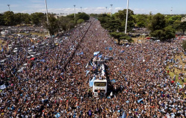“Me parece que al final por acá no va a pasar”, era lo que se decia minuto a minuto, luego cuando las noticias empezaron a vaticinar un cambio de último momento del recorrido de la caravana albiceleste las personas, desorientadas, se trasladaban de un punto al otro de la ciudad por la arteria vehicular mientras algunos pocos camiones les pasaban por el medio de un pasaje humano conformado para no obstruir el tránsito. Al final a las 14:30hs se suspendia el recorrido glorioso de los futbolistas campeones del mundo y regresaban al predio de la AFA en helicóptero tras dejar varado en la autopista al micro que los trasladaba. A partir de las 20:30hs comenzó a fluir la delincuencia, saquearon dos supermercados, varios maxikioscos, una pizzeria, una casa de indumentaria y nada mas y nada menos que un Banco, y más robos y saqueos, además de romper vidrieras y paradas del metrobús, y la frutilla del postre, los malechores recibian a botellasos a la policia de la ciudad que pese a los incidentes y las corridas se mantenian demasiados pasivos. En estas horas la policia se está reforzando con camiones hidrántes para disuadir y resguardar la zona céntrica porteña. Que pena que se empañe lo que comenzó como un dia de festejo con mas de 5 millones de personas en las calles.