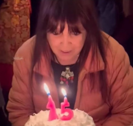 La cantante y actriz celebró sus ocho décadas con su esposa y varios amigos artistas, y no faltó el momento en que entre varios de los presentes entonaron un clásico suyo, “El sol siempre está”. Llegado el momento de soplar las velitas -que formaban el número 15, la artista solo pidió como deseos la salud. Luego, la cantante arrobó a algunos de los invitados que había compartido con ella las estrofas de “El sol siempre está”: Sandra Mihanovich, Hilda Lizarazu, Lito Vitale, Angel Mahler, Teresa Parodi, Lucía Galán y Julia Zenko.